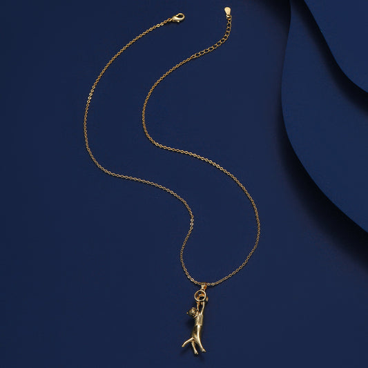 Pendant necklace with inlaid zircon, colored shell, and floral pattern carving