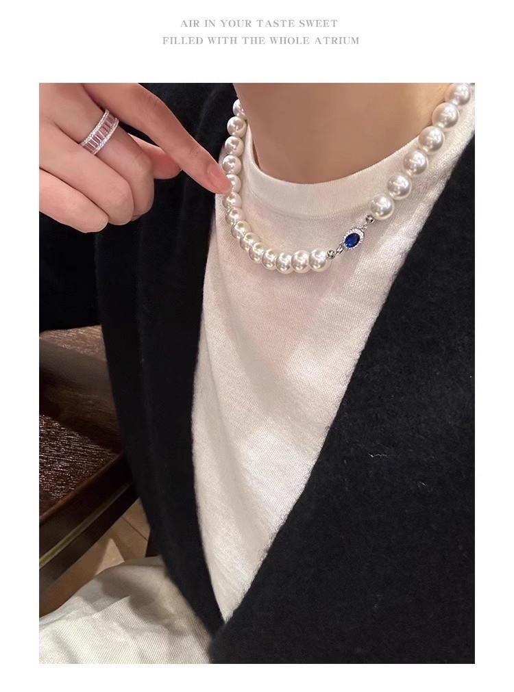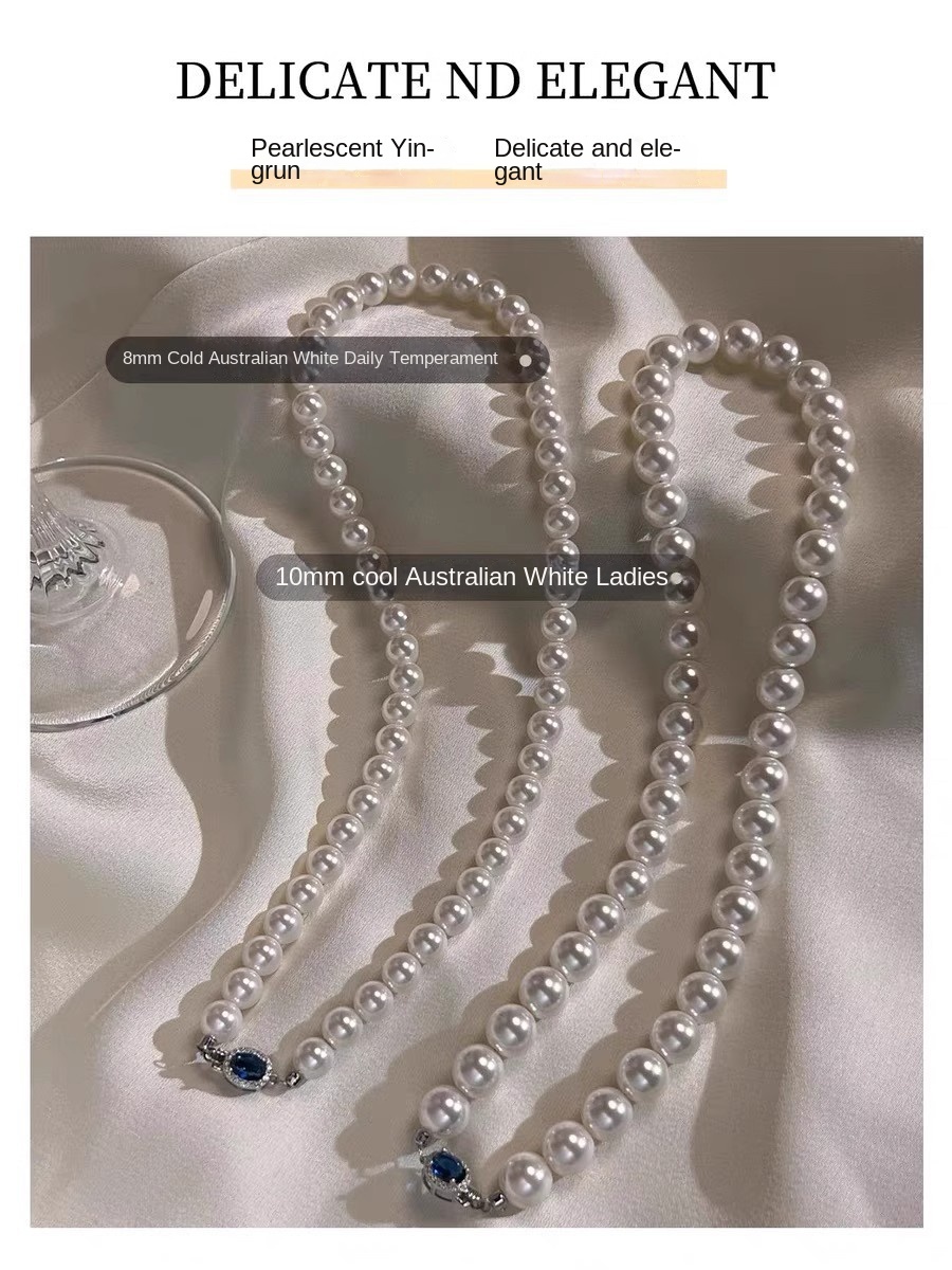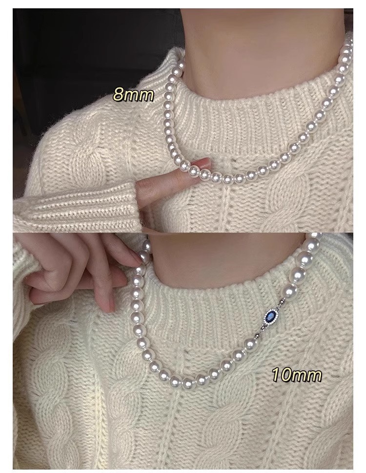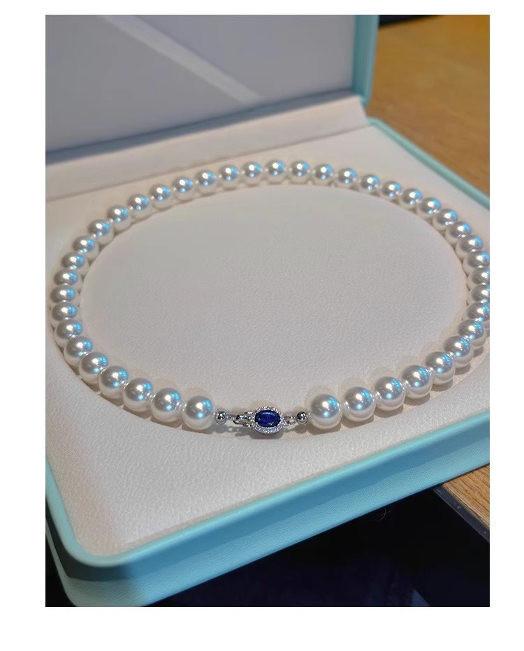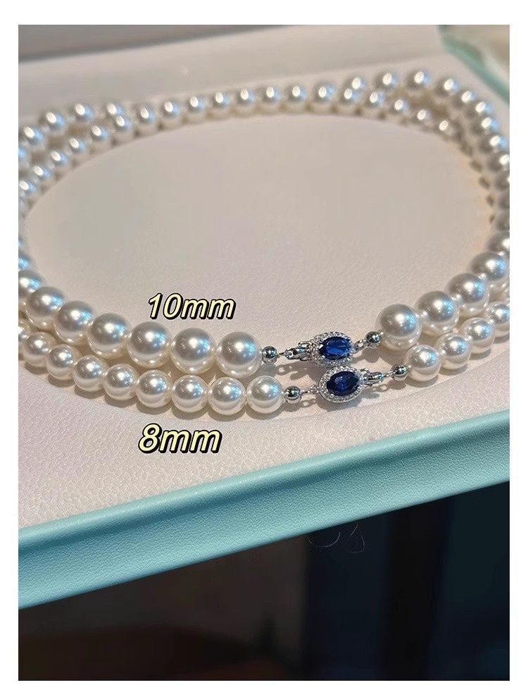 Color: White Pearl Blue Sapphire Necklace - 6MM, White Pearl Blue Sapphire Necklace - 8MM, White Pearl Blue Sapphire Necklace - 10MM, White Pearl Blue Sapphire Necklace - 12MM, High-Quality Natural Australian Mother-of-Pearl - 6MM (Length 45CM), High-Quality Natural Australian Mother-of-Pearl - 8MM (Length 45CM), High-Quality Natural Australian Mother-of-Pearl - 10MM (Length 45CM), High-Quality Natural Australian Mother-of-Pearl - 12MM (Length 45CM), Extended High-Quality 8MM - 50CM, Extended High-Quality 10MM - 50CM