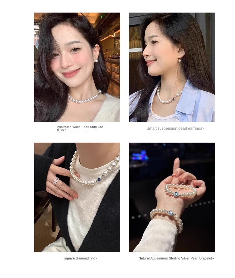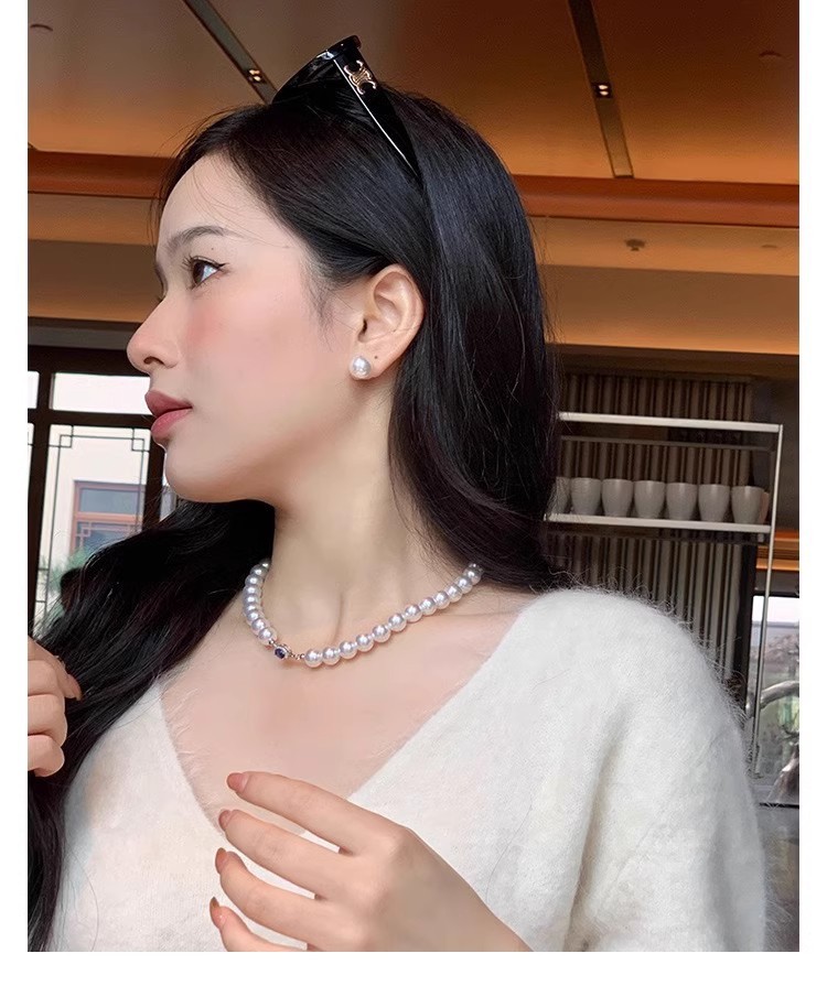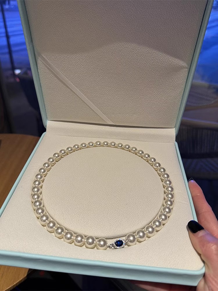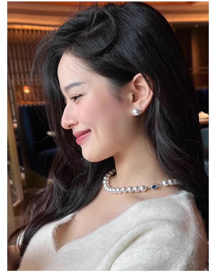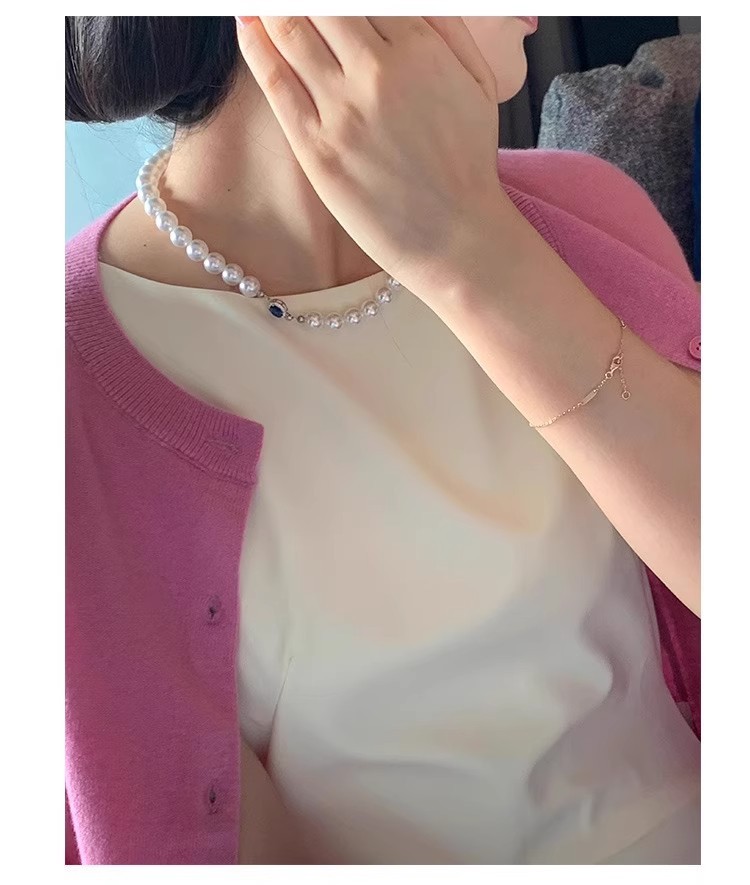 Color: White Pearl Blue Sapphire Necklace - 6MM, White Pearl Blue Sapphire Necklace - 8MM, White Pearl Blue Sapphire Necklace - 10MM, White Pearl Blue Sapphire Necklace - 12MM, High-Quality Natural Australian Mother-of-Pearl - 6MM (Length 45CM), High-Quality Natural Australian Mother-of-Pearl - 8MM (Length 45CM), High-Quality Natural Australian Mother-of-Pearl - 10MM (Length 45CM), High-Quality Natural Australian Mother-of-Pearl - 12MM (Length 45CM), Extended High-Quality 8MM - 50CM, Extended High-Quality 10MM - 50CM